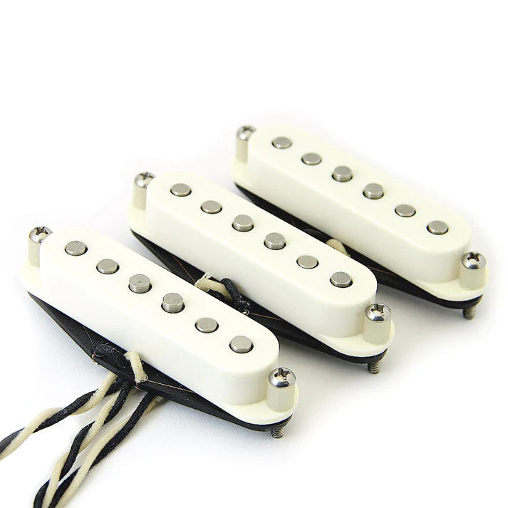 Die Fünfziger Das „Low Output“-Set ist, wie bei einem echten Vintage-Modell aus den 50er-Jahren, mit geringer Wicklung für klare und differenzierte Höhen ausgelegt. Der Steg-Pickup hat eine etwas höhere Wicklung, um die extremen Höhen etwas abzumildern. Die geringere Wicklung sorgt für einen sauberen Klang, solange man die Pickups nicht stark aussteuert.